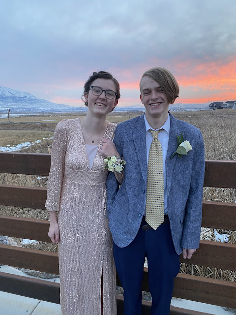 Her group- they met at our house for pictures, (we caught the perfect sunset down by the bridge!) she drove them all in the van to dinner, and they came back and played games for a while before going to the dance. Hannah and her date, james and Ashley, Aurora and her date, and Lynus and katelyn.